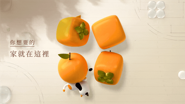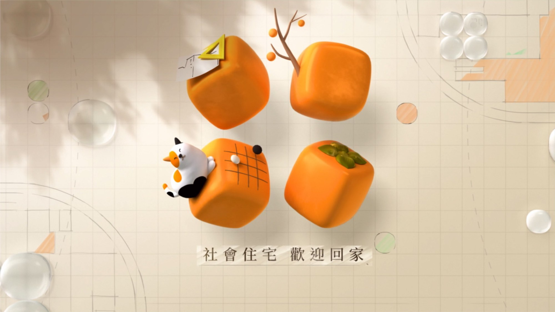 從「安居・好室」識別標誌出發,以「讓好柿成橘」為設計主軸,我們拆解社會住宅的內部,描繪居民懷抱著「家」的多元意義,從孩子的成長空間,到青壯年打拼的基地,再到社區住戶交流相伴的場所。社會住宅一室一戶裝載成家與生活的願望,我們用明亮生動的插畫風格、律動的鏡頭語言和音樂,將識別標誌造型翻玩成生活方式的特質,為社會住宅傳達期盼、溫暖的品牌形象。