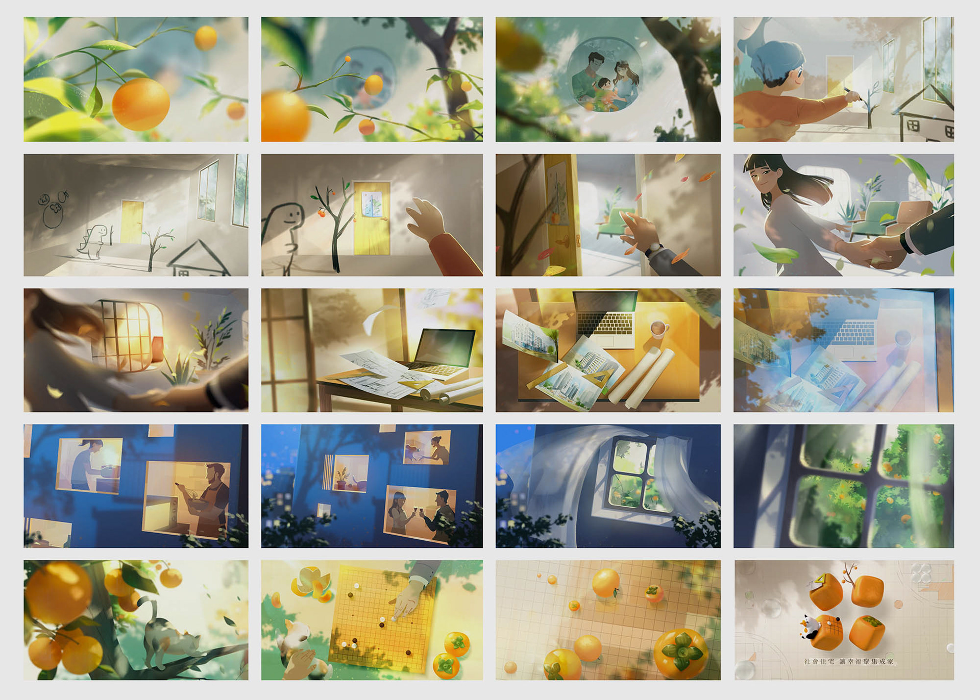 With the logo for “Decent Living; Quality Housing ” as the point of departure, the design centers around “turn persimmon into tangerine” (homonymic with “turn good things into reality” in Chinese) to capture the various meanings of “home” for residents, from a living space for children to a base for youth’s career and a venue for community dwellers’ exchange. Each and every unit of social housing is loaded with wishes of home and life. In a bright, vivid illustration style, dynamic film language and music, we play with the form of the logo as traits of lifestyle, break free from the stereotypes of social housing, and communicate the brand image of hope and warmth for social housing.